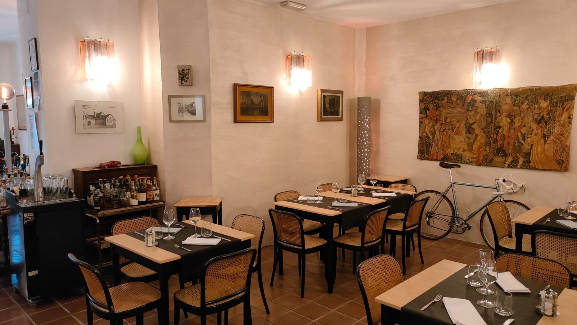 Pur dando grande spazio ai vini regionali, il ristorante propone anche una curata scelta di vitigni italiani ed esteri, tra le etichette più interessanti e rappresentative del panorama enologico.